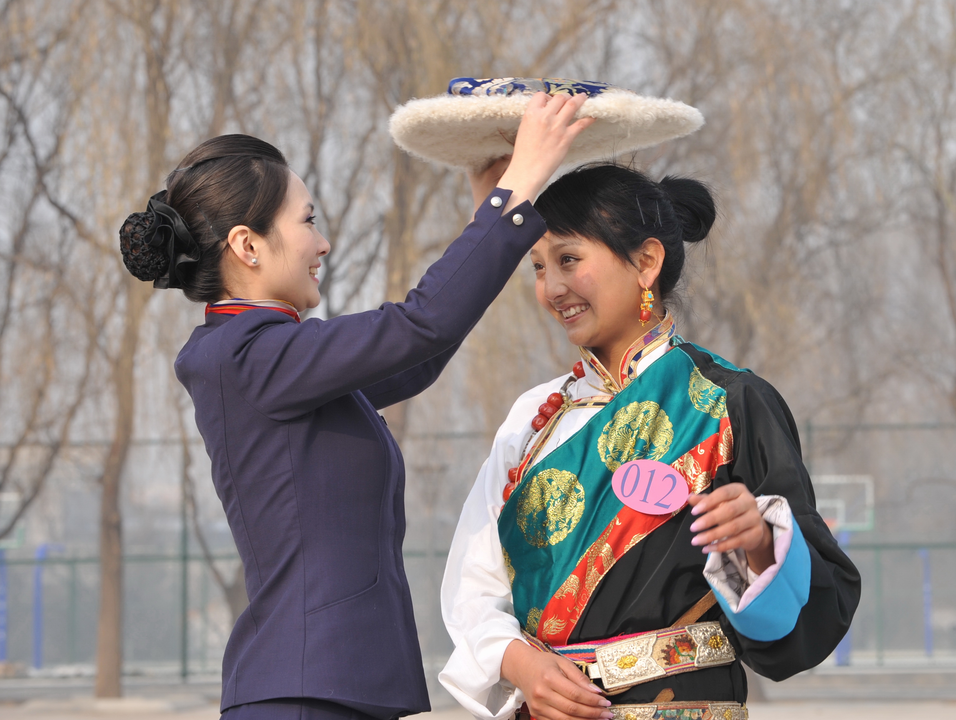 2007年起,中國東航在西藏持續(xù)做好航線運營,不僅在拉薩招聘當?shù)貑T工,還在全國范圍內(nèi)招聘藏族乘務(wù)員,利用飛機客艙平臺開展藏語服務(wù)。