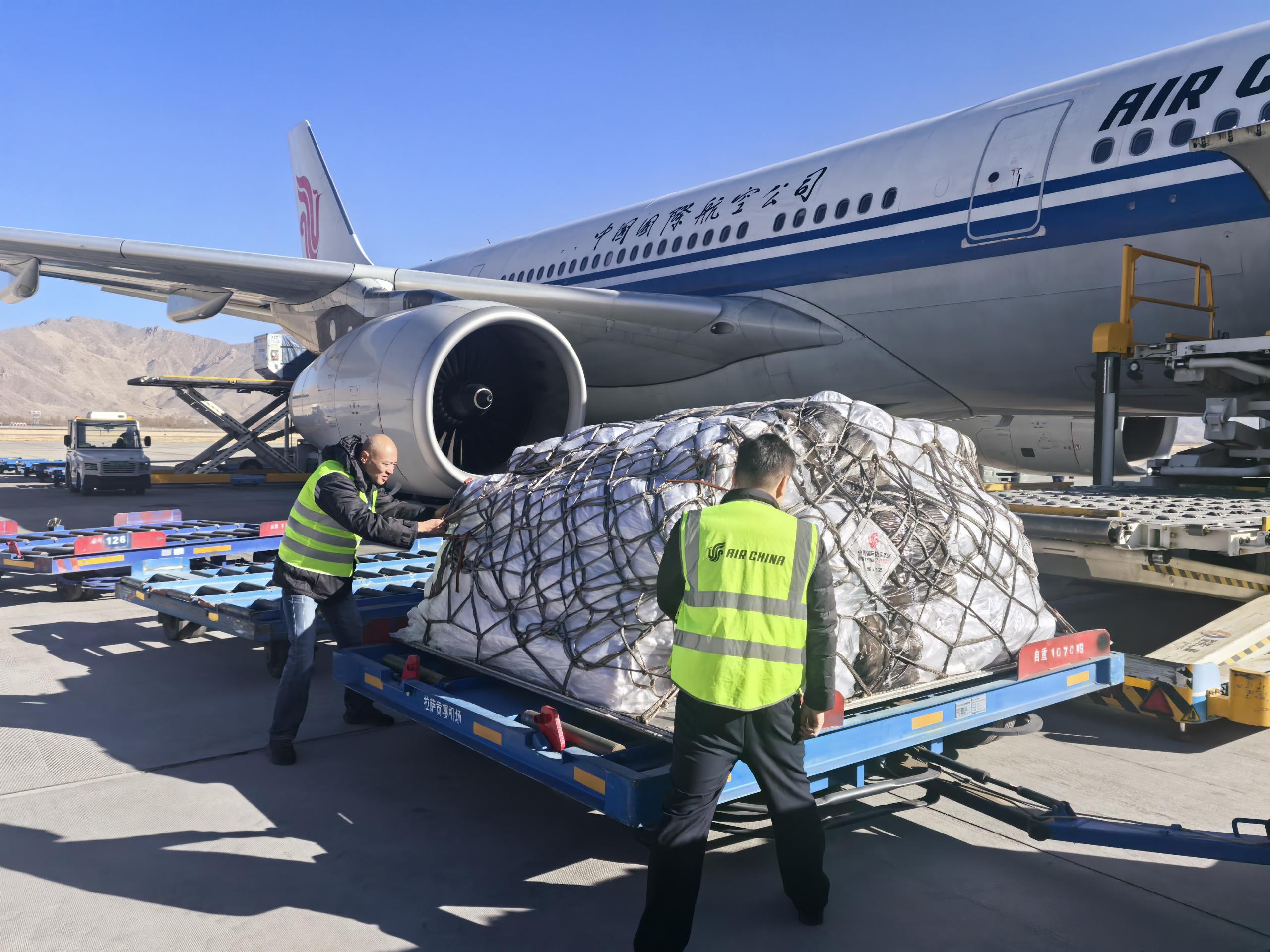 西藏日喀則地震發(fā)生后,中航集團第一時間啟動應急機制,調(diào)整航班計劃,全力保障抗震救災運輸。圖為2025年1月9日,中航集團飛機載著救援人員和物資奔赴災區(qū)。
