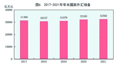年末國家外匯儲備32502億美元,比上年末增加336億美元。全年人民幣平均匯率為1美元兌6.4515元人民幣,比上年升值6.9%。(見圖6)