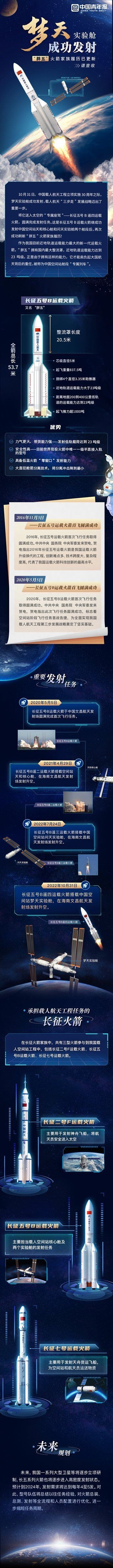 圖解:“夢(mèng)天”成功發(fā)射,“胖五”火箭家族履歷更新