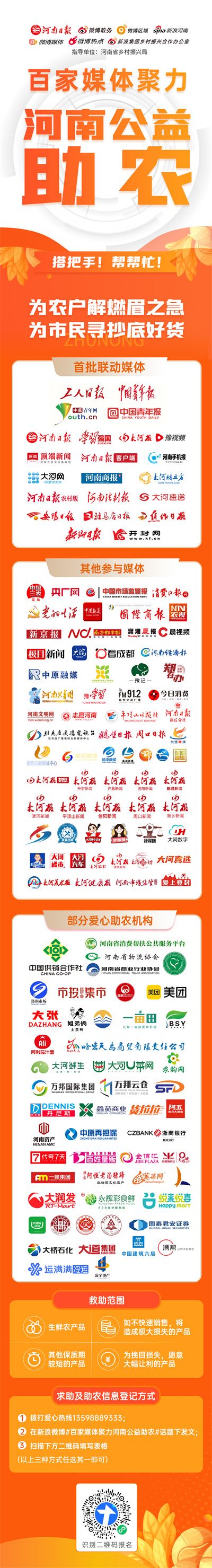 11月18日,由河南日?qǐng)?bào)社聯(lián)合微博政務(wù)、微博區(qū)域、新浪河南、微博媒體、微博熱點(diǎn)、新浪集團(tuán)鄉(xiāng)村振興合作辦公室發(fā)起,中國(guó)青年報(bào)、中國(guó)青年網(wǎng)等媒體聯(lián)動(dòng)的“百家媒體聚力河南公益助農(nóng)”活動(dòng)正式啟動(dòng)。旨在百家媒體形成合力,搭建起信息共享的供銷(xiāo)互助平臺(tái),最大程度動(dòng)員全國(guó)采購(gòu)力量,解決“非常時(shí)期”的河南農(nóng)產(chǎn)品滯銷(xiāo)難題。這些天來(lái),百余家媒體發(fā)揮“最強(qiáng)信息中介”力量,幫助眾多農(nóng)戶(hù)對(duì)接銷(xiāo)售渠道,傾盡全力解決蔬菜賣(mài)難問(wèn)題。