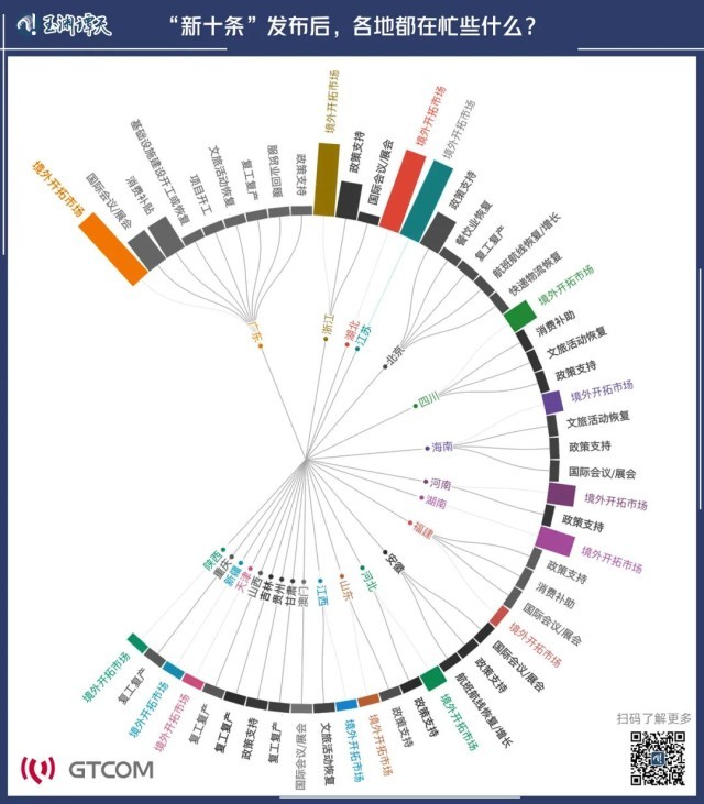 通過對(duì)公開數(shù)據(jù)的挖掘,我們發(fā)現(xiàn),在“新十條”發(fā)布后,有至少23個(gè)省市出臺(tái)了支持企業(yè)境外拓展市場(chǎng)的政策。