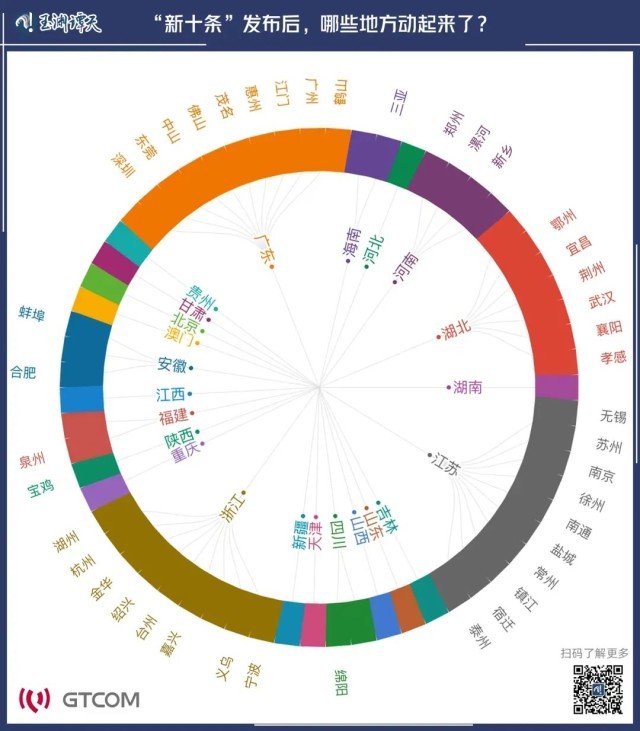 ||通過對(duì)公開數(shù)據(jù)的挖掘我們發(fā)現(xiàn),12月7日“新十條”發(fā)布后,多地就立即采取行動(dòng),優(yōu)化疫情防控措施