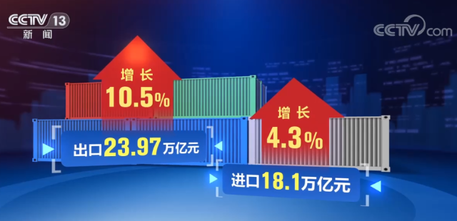 海關統(tǒng)計顯示,2022年,我國外貿進出口總值42.07萬億元,比2021年增長7.7%。其中,出口23.97萬億元,增長10.5%;進口18.1萬億元,增長4.3%。