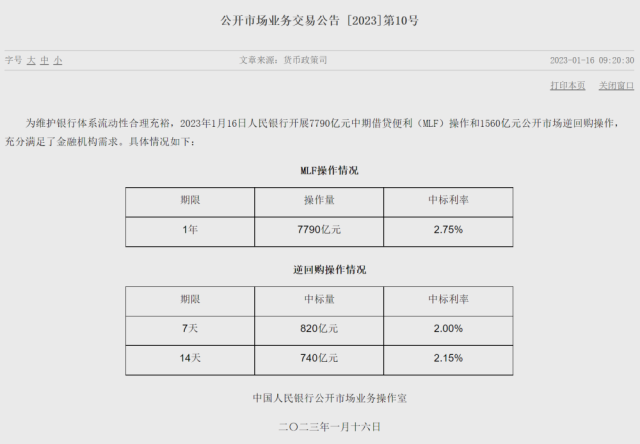其中,MLF操作期限為1年,中標(biāo)利率2.75%;7天期逆回購操作中標(biāo)量為820億元,中標(biāo)利率2%;14天期逆回購操作中標(biāo)量為740億元,中標(biāo)利率2.15%。