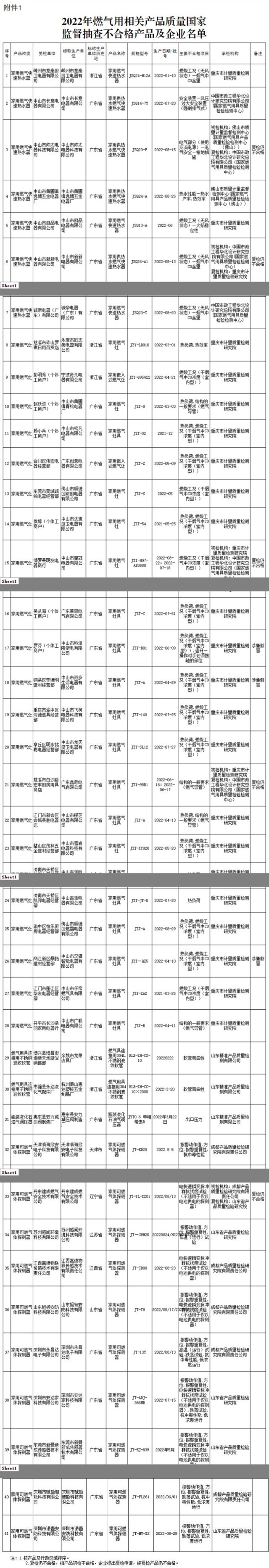 國家市場(chǎng)監(jiān)管總局抽查610批次燃?xì)猱a(chǎn)品 發(fā)現(xiàn)41批次產(chǎn)品不合格