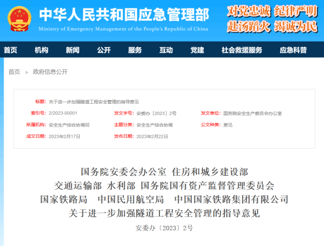 國(guó)務(wù)院安委辦等八部門(mén):進(jìn)一步加強(qiáng)隧道工程安全管理