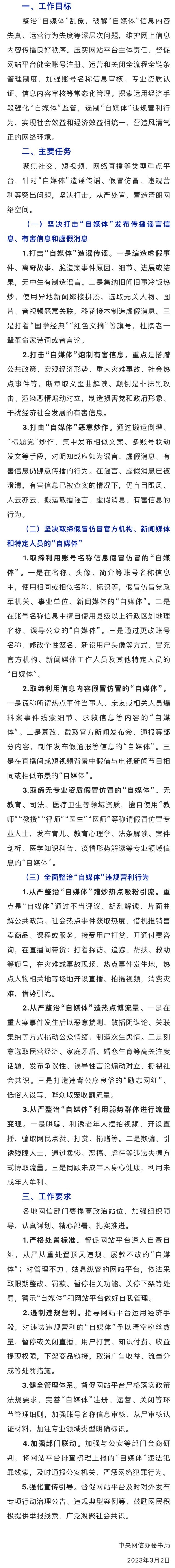 近日,中央網信辦印發(fā)通知,自即日起,開展為期兩個月的“清朗·從嚴整治‘自媒體’亂象”專項行動。具體內容如下: