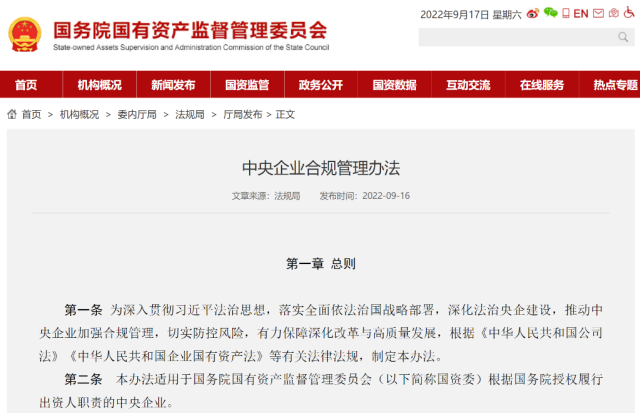 2022年,國資委印發(fā)《中央企業(yè)合規(guī)管理辦法》。管理辦法在充分借鑒世界一流企業(yè)先進經(jīng)驗的基礎上,明確提出中央企業(yè)應當結合實際設立首席合規(guī)官,不新增領導崗位和職數(shù),由總法律顧問兼任,對企業(yè)主要負責人負責,領導合規(guī)管理部門組織開展相關工作,指導所屬單位加強合規(guī)管理。(記者王希)