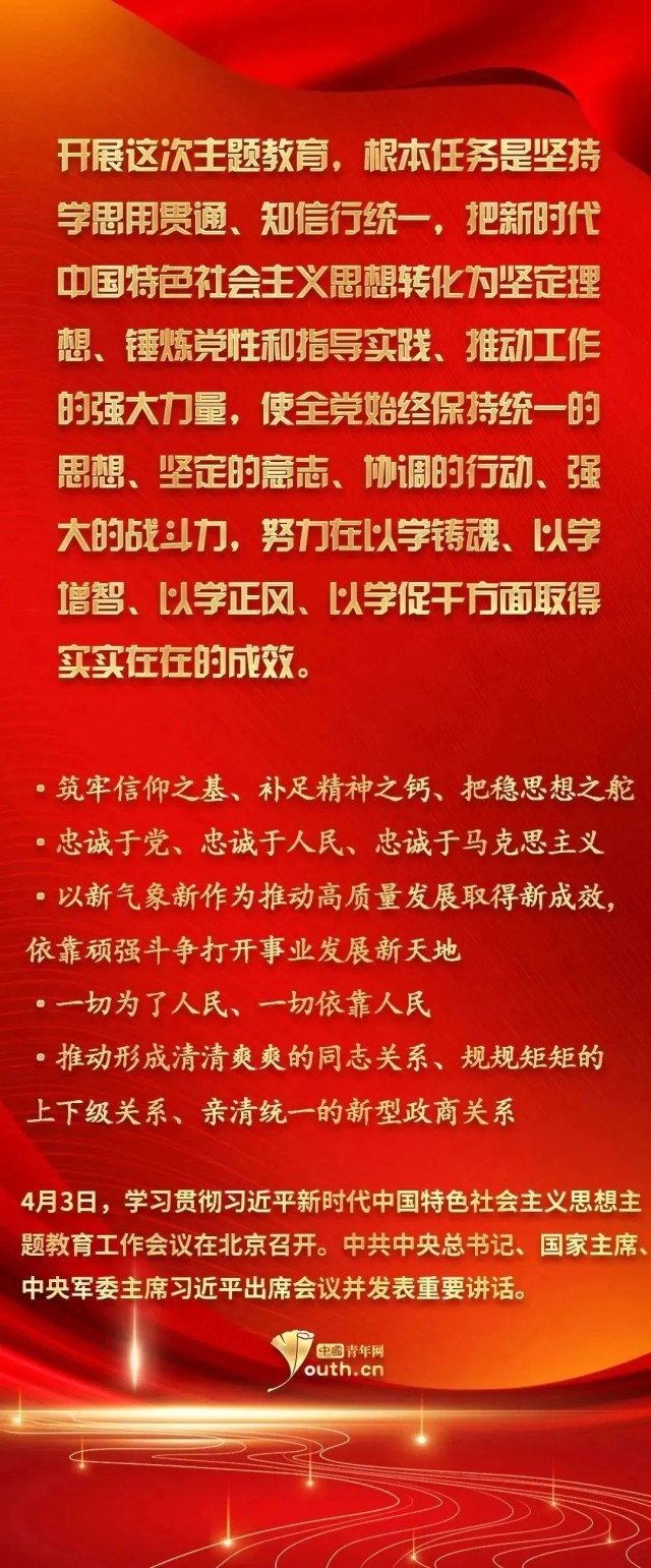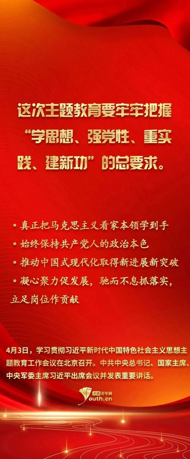 習(xí)近平新時(shí)代中國(guó)特色社會(huì)主義思想實(shí)現(xiàn)了馬克思主義中國(guó)化新的飛躍。此次開展學(xué)習(xí)貫徹習(xí)近平新時(shí)代中國(guó)特色社會(huì)主義思想主題教育,是一件事關(guān)全局的大事。廣大青年要以這次主題教育為契機(jī),用黨的科學(xué)理論武裝頭腦,在學(xué)習(xí)習(xí)近平新時(shí)代中國(guó)特色社會(huì)主義思想中不斷筑牢信仰之基、補(bǔ)足精神之鈣、把穩(wěn)思想之舵。