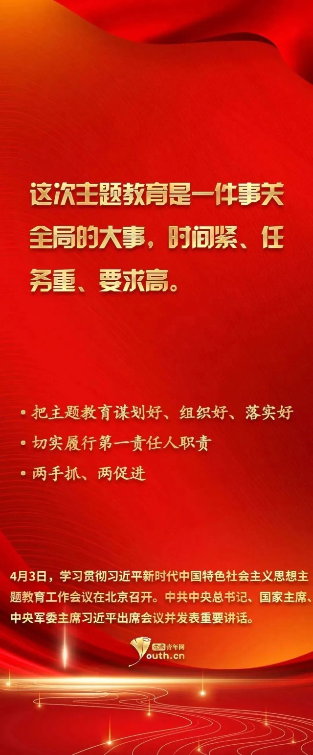 主講人:青年朋友們大家好,我是來(lái)自北京青年政治學(xué)院馬克思主義學(xué)院的周穎老師。4月3日,在學(xué)習(xí)貫徹習(xí)近平新時(shí)代中國(guó)特色社會(huì)主義思想主題教育工作會(huì)議上,習(xí)近平總書記指出,這次主題教育是一件事關(guān)全局的大事,時(shí)間緊、任務(wù)重、要求高。