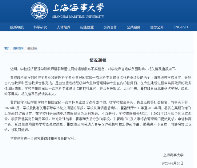 上海海事大學(xué)被舉報(bào)弄虛作假,校方發(fā)布情況通報(bào):經(jīng)查,均不屬實(shí)