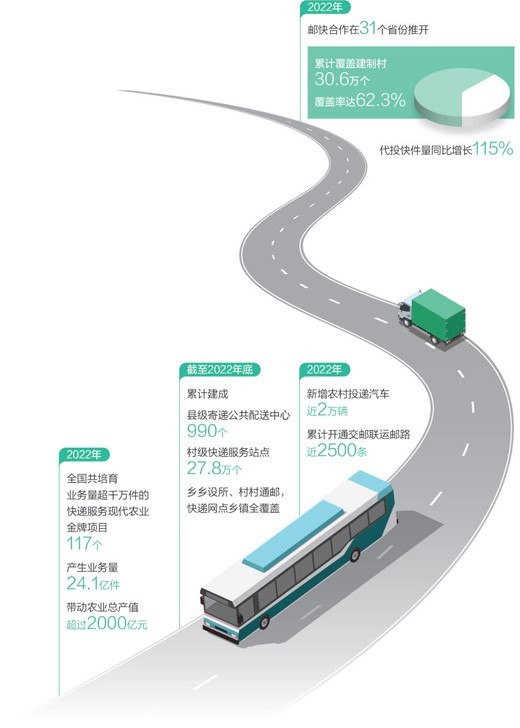 放眼全國,每天,1億多件快遞包裹在農村地區(qū)流動。隨著農村寄遞物流體系的加快建設和快遞進村覆蓋率的持續(xù)提升,快遞業(yè)將進一步發(fā)揮在促進消費升級、暢通經(jīng)濟循環(huán)方面的作用,為促進城鄉(xiāng)商品流通、拓展農村消費、推進鄉(xiāng)村振興貢獻力量。