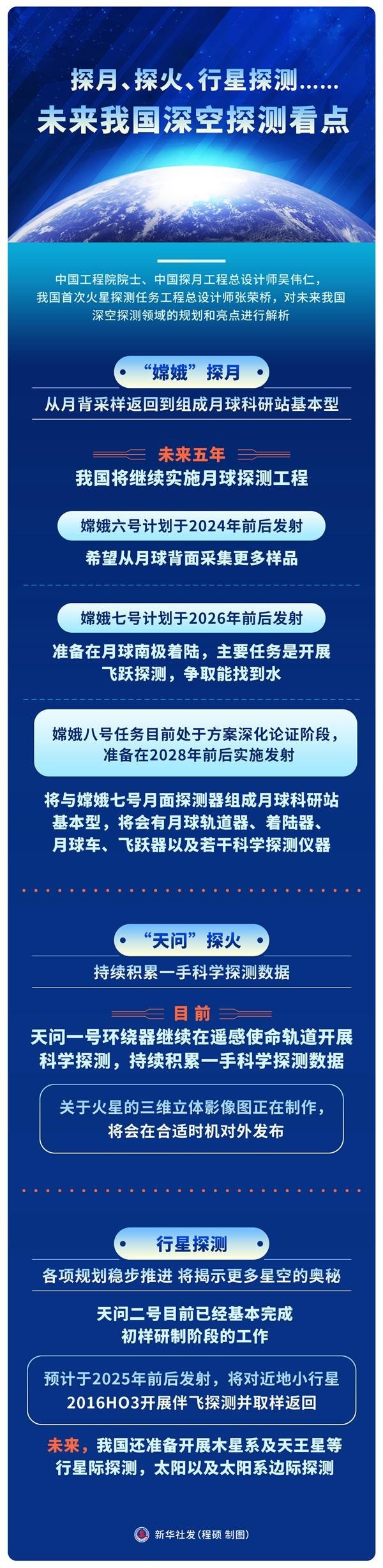 “新華視點(diǎn)”記者采訪了中國(guó)工程院院士、中國(guó)探月工程總設(shè)計(jì)師吳偉仁,我國(guó)首次火星探測(cè)任務(wù)工程總設(shè)計(jì)師張榮橋,對(duì)未來(lái)我國(guó)深空探測(cè)領(lǐng)域的規(guī)劃和亮點(diǎn)進(jìn)行解析。