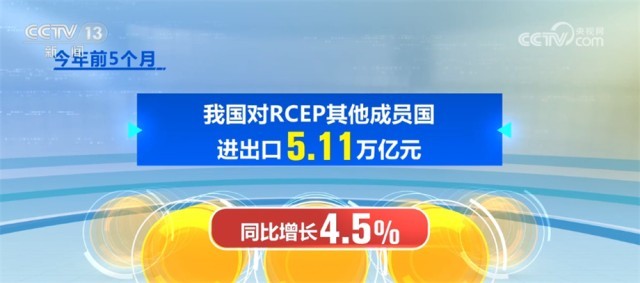 隨著區(qū)域經(jīng)濟(jì)交往不斷互聯(lián)互通,我國對(duì)《區(qū)域全面經(jīng)濟(jì)伙伴關(guān)系協(xié)定》(RCEP)其他成員進(jìn)出口穩(wěn)定增長,今年前5個(gè)月,我國對(duì)RCEP其他成員國進(jìn)出口5.11萬億元,同比增長4.5%,RCEP占我國外貿(mào)比重超過30%。