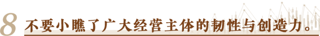 書寫這份“中國經(jīng)濟(jì)半年報(bào)”的,不光是宏觀政策的制定者,還有億萬經(jīng)營主體。它們?cè)谑袌?chǎng)經(jīng)濟(jì)風(fēng)風(fēng)雨雨中摸爬滾打過來,承載著就業(yè),創(chuàng)造著財(cái)富,推動(dòng)著創(chuàng)新,體現(xiàn)著社會(huì)責(zé)任。無論是服務(wù)業(yè)還是制造業(yè),無論是傳統(tǒng)產(chǎn)業(yè)還是戰(zhàn)略性新興產(chǎn)業(yè),哪一行哪一業(yè),缺得了充滿活力的經(jīng)營主體?看宏觀政策是否有效,標(biāo)準(zhǔn)之一就是看能否持續(xù)廣泛激發(fā)經(jīng)營主體的活力。一句話,任何時(shí)候都不要小瞧了廣大經(jīng)營主體的韌性與創(chuàng)造力,尊重他們,幫助他們,相信他們。