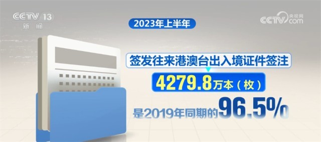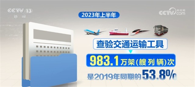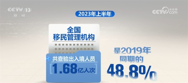 據(jù)國(guó)家移民管理局統(tǒng)計(jì),2023年上半年,全國(guó)移民管理機(jī)構(gòu)共查驗(yàn)出入境人員1.68億人次,是2019年同期的48.8%,其中內(nèi)地居民8027.6萬人次,港澳臺(tái)居民7490.3萬人次,外國(guó)人843.8萬人次(不含邊民);查驗(yàn)交通運(yùn)輸工具983.1萬架(艘、列、輛)次,是2019年同期的53.8%,其中,飛機(jī)20.4萬架次、船舶19.1萬艘次、火車4.4萬列次、汽車939.2萬輛次。