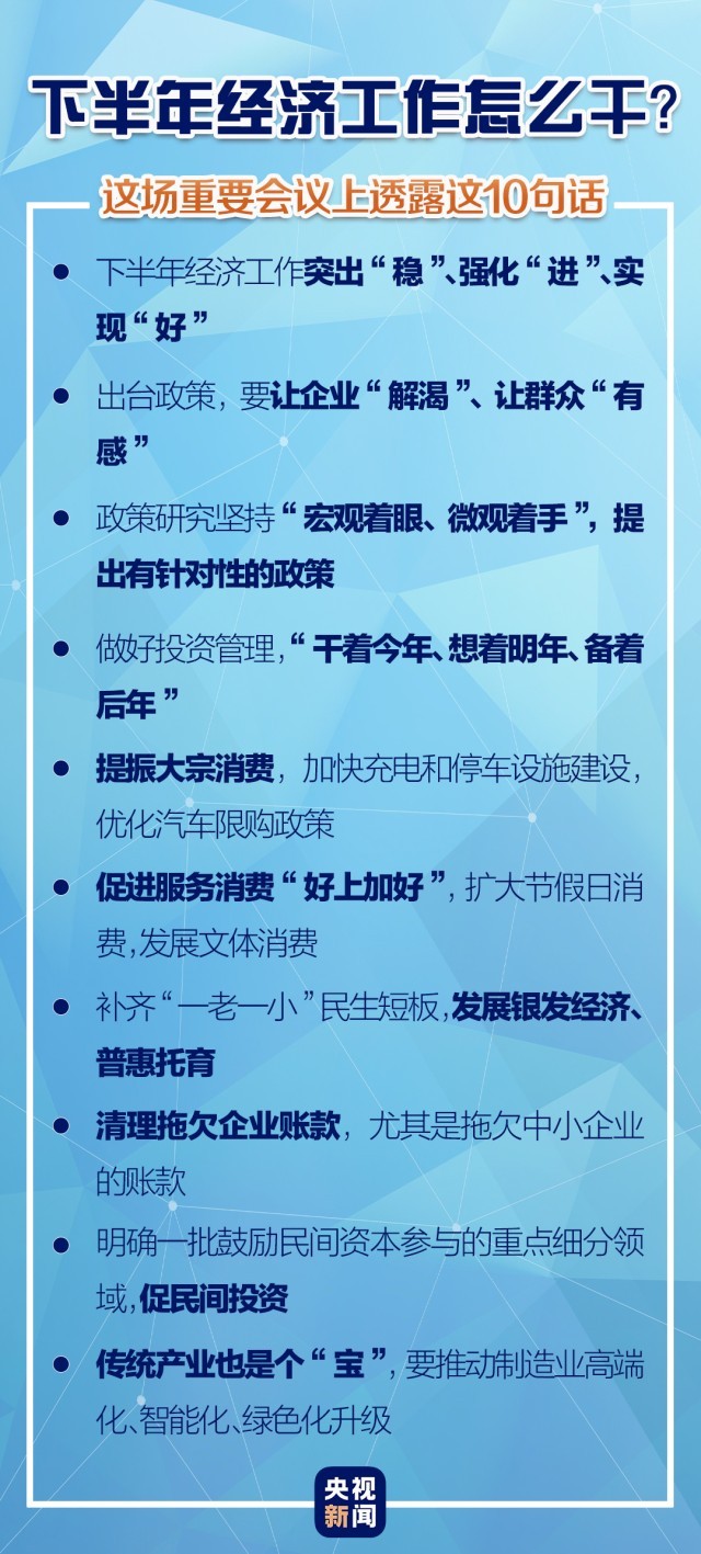 下半年經(jīng)濟(jì)怎么干?這場(chǎng)重要會(huì)議上透露這10句話