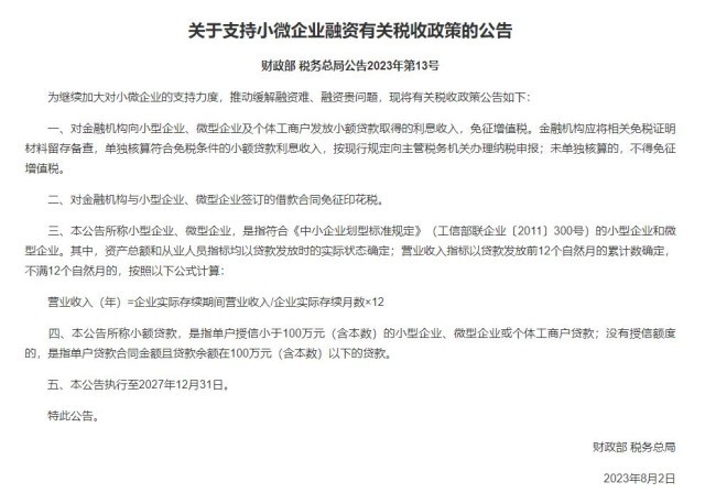 央視網(wǎng)消息:據(jù)財政部,為繼續(xù)加大對小微企業(yè)的支持力度,推動緩解融資難、融資貴問題,現(xiàn)將有關(guān)稅收政策公告如下: