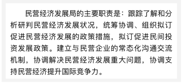 今天(9月4日)有個消息刷了屏:國家發(fā)改委新設(shè)民營經(jīng)濟發(fā)展局。仔細閱讀官方通稿,民營經(jīng)濟發(fā)展局主要職責(zé)103字,沒提一個“管”字。點擊視頻↓↓↓