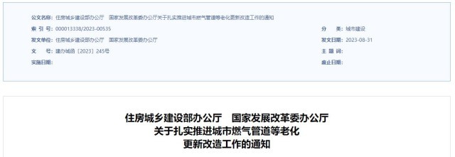 住建部等兩部門:推進(jìn)2023年城市燃?xì)夤艿赖壤匣赂脑旃ぷ?/h2>