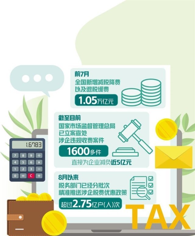 最新數(shù)據(jù)顯示,前7月,全國新增減稅降費以及退稅緩費1.05萬億元。今年以來,我國聚焦支持做強做優(yōu)實體經(jīng)濟、促增收擴消費、推動高水平科技自立自強、支持戰(zhàn)略性新興產(chǎn)業(yè)發(fā)展等多方面舉措,打出一套稅費政策組合拳,實打?qū)嵵С制髽I(yè)紓困發(fā)展。