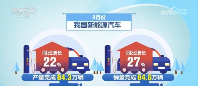 中國(guó)汽車(chē)工業(yè)協(xié)會(huì)的數(shù)據(jù)顯示,8月份,我國(guó)新能源汽車(chē)產(chǎn)銷(xiāo)量分別完成84.3萬(wàn)輛和84.6萬(wàn)輛,同比分別增長(zhǎng)22%和27%,市場(chǎng)占有率達(dá)到32.8%。1月—8月,新能源汽車(chē)產(chǎn)銷(xiāo)分別完成543.4萬(wàn)輛和537.4萬(wàn)輛,同比分別增長(zhǎng)36.9%和39.2%。