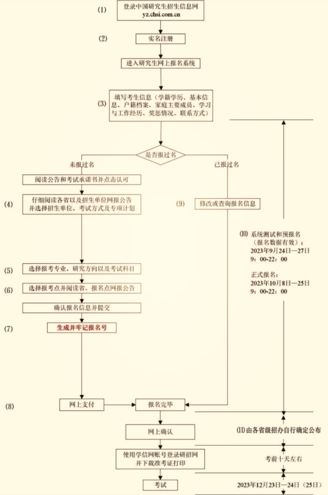 ?。?)考生應在規(guī)定時間登錄“中國研究生招生信息網”(網址:https://yz.chsi.com.cn)瀏覽報考須知,并按省級教育招生考試機構、報考點以及報考招生單位的網上公告要求報名;