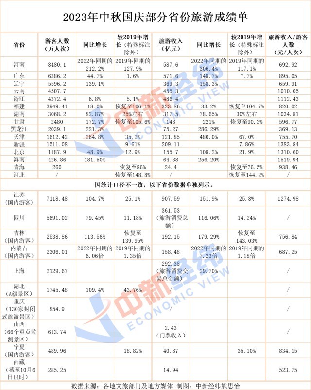 25省份中秋國(guó)慶旅游成績(jī)單:河南攬客居首,江蘇吸金最多