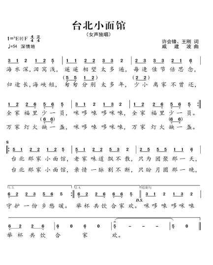 歌曲《臺北小面館》圍繞中華民族唇齒相依、骨肉相連一家親,海峽兩岸一脈相承、血濃于水一家人的熾熱情感為主線,歌詞通過“海水深,淚窩淺”“歸途長,海峽短”,抒發(fā)了同胞隔海相望的濃濃思念之情,以及“每逢佳節(jié)倍思念”“少小離家不曾還”,傾訴著親人渴望團圓的深深相思。