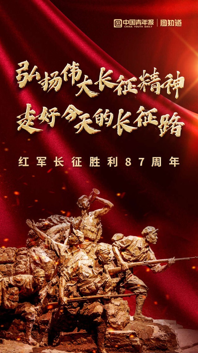 從1934年10月至1936年10月,紅軍第一、第二、第四方面軍和第二十五軍進(jìn)行了偉大的長征。中國共產(chǎn)黨領(lǐng)導(dǎo)紅軍,以非凡的智慧和大無畏的英雄氣概,戰(zhàn)勝千難萬險,付出巨大犧牲,勝利完成震撼世界、彪炳史冊的長征。紀(jì)念紅軍長征勝利87周年,致敬革命先輩,偉大長征精神始終閃耀著火熱的光芒!