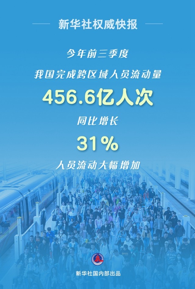 今年前三季度我國完成跨區(qū)域人員流動量456.6億人次