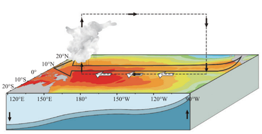 正常情況下,赤道西太平洋是大片的暖水區(qū),其面積相當(dāng)于我國陸地面積的兩倍多,而東太平洋是一片冷水區(qū)。但在一些年份,原本堆積在西太平洋的暖海水會往東蔓延,使得赤道中東太平洋海溫持續(xù)異常升高;而另一些年份,赤道中東太平洋冷水區(qū)范圍擴大,海水變得更冷。當(dāng)赤道中東太平洋海溫出現(xiàn)這種異?,F(xiàn)象,就有可能發(fā)生厄爾尼諾或拉尼娜。
