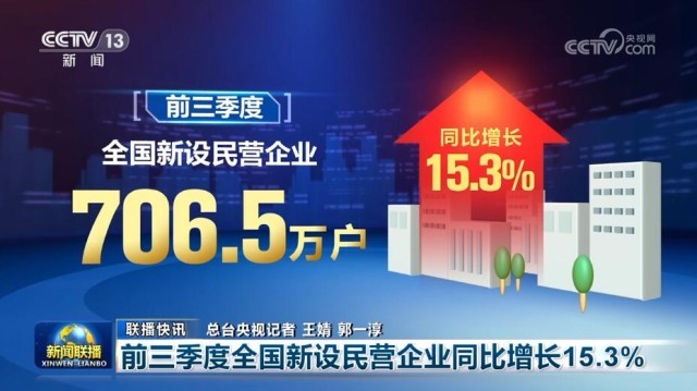 另外,市場監(jiān)管總局今天公布數據顯示,前三季度,全國新設民營企業(yè)706.5萬戶,同比增長15.3%。截至今年9月底,全國登記在冊民營企業(yè)數量超過5200萬戶,民營企業(yè)在企業(yè)總量中的占比達到92.3%。