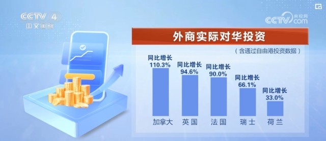 盡管部分指標出現(xiàn)波動,但外商來華投資熱度不減。加拿大、英國、法國、瑞士、荷蘭實際對華投資同比分別增長110.3%、94.6%、90%、66.1%、33%。