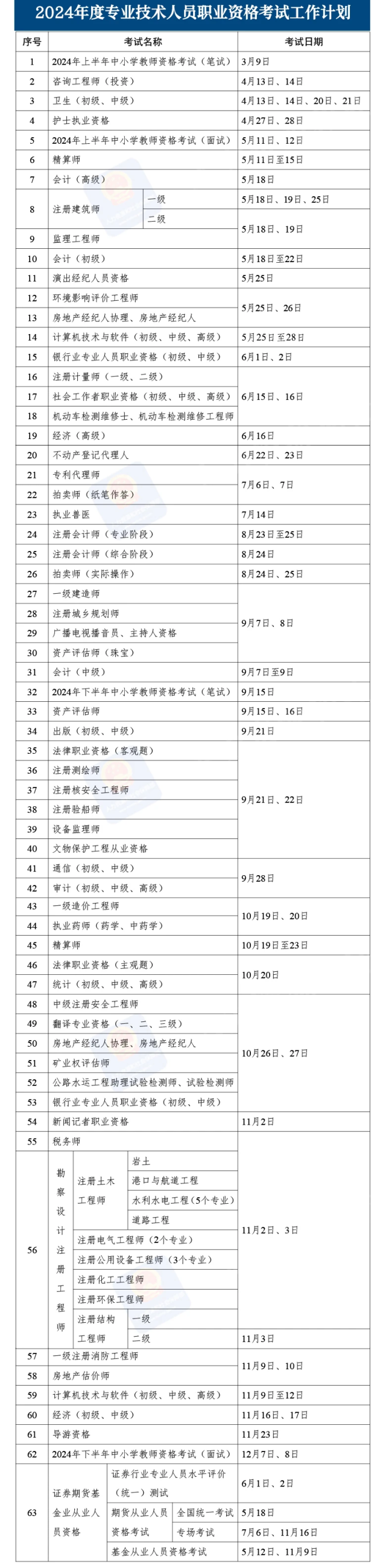 2024年專業(yè)技術(shù)人員職業(yè)資格考試計(jì)劃發(fā)布!附時(shí)間表