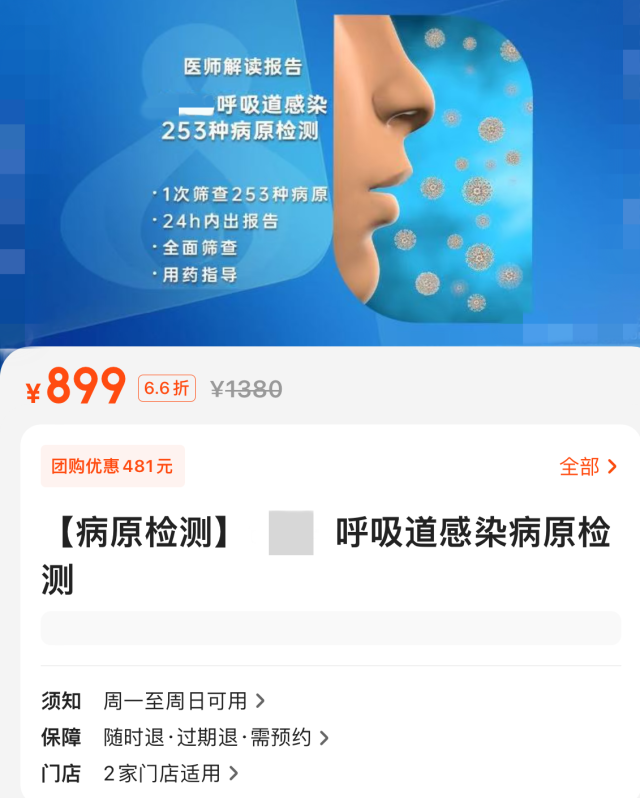 事實(shí)上,這并非種類最多的檢測方案。記者在調(diào)查中發(fā)現(xiàn),有機(jī)構(gòu)推出的呼吸道感染病原檢測一次篩查病原多達(dá)253種,原價(jià)1380元,折后也要899元。