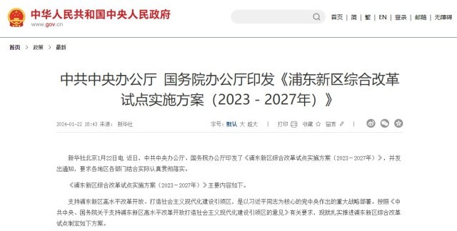 近日,中共中央辦公廳、國務(wù)院辦公廳印發(fā)了《浦東新區(qū)綜合改革試點實施方案(2023-2027年)》。