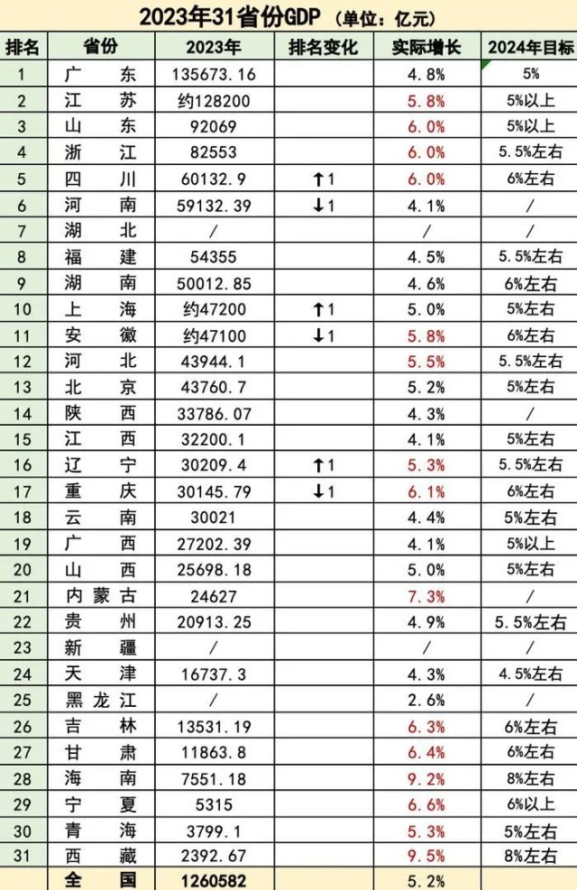 廣東成為首破13萬(wàn)億元的省份,山東GDP躍上9萬(wàn)億元,四川突破6萬(wàn)億元,湖南沖破5萬(wàn)億元大關(guān),重慶、遼寧、云南攜手超過(guò)3萬(wàn)億元,貴州突破2萬(wàn)億元,多個(gè)省份在2023年邁上了“新臺(tái)階”。