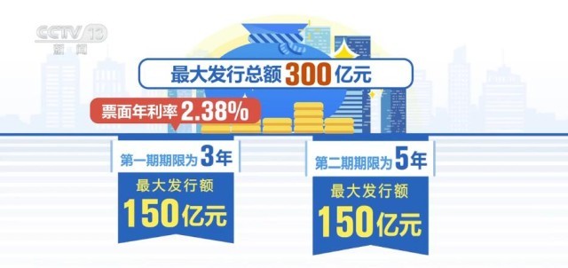 根據(jù)財(cái)政部公告,2024年第一期、第二期儲蓄國債(憑證式)均為固定利率、固定期限品種,最大發(fā)行總額300億元。其中,第一期期限為3年,最大發(fā)行額150億元,票面年利率2.38%;第二期期限為5年,最大發(fā)行額150億元,票面年利率2.5%。