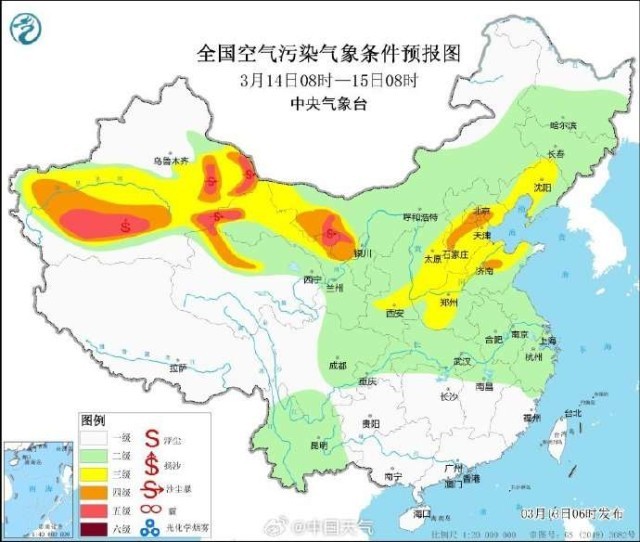 據(jù)中央氣象臺預(yù)報,14日至17日,受冷空氣大風影響,西北地區(qū)大部、華北等地自西向東有一次沙塵天氣過程。這將是今春首場沙塵天氣,也是今年來第二輪沙塵過程,上一次還是春節(jié)假期結(jié)束后的寒潮所帶來的強沙塵暴過程(2月17日-2月20日)。