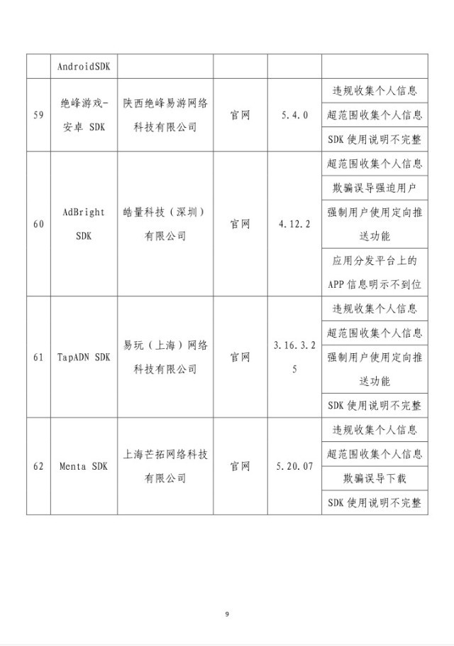 工業(yè)和信息化部高度重視用戶權益保護工作,依據(jù)《個人信息保護法》《網(wǎng)絡安全法》《電信條例》《電信和互聯(lián)網(wǎng)用戶個人信息保護規(guī)定》等法律法規(guī),持續(xù)整治APP侵害用戶權益的違規(guī)行為。近期,工業(yè)和信息化部組織第三方檢測機構對用戶反映突出的“搖一搖”亂跳轉、信息窗口“關不掉”以及違規(guī)收集使用個人信息等問題進行檢查,共發(fā)現(xiàn)62款APP及SDK存在侵害用戶權益行為,現(xiàn)予以通報。