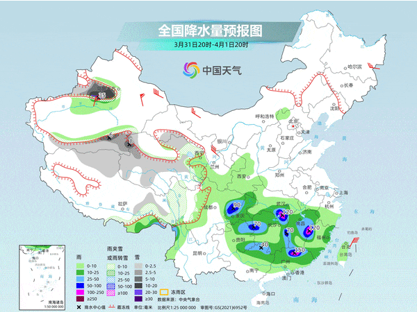 下周,南方天氣的還有一個(gè)關(guān)鍵詞是降雨。兩輪降雨過(guò)程接連來(lái)襲,分別會(huì)出現(xiàn)在4月1-3日、4-6日,降雨的同時(shí)強(qiáng)對(duì)流天氣多發(fā)。