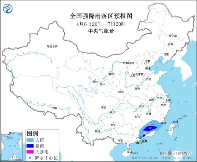央視網(wǎng)消息:中央氣象臺4月6日18時(shí)發(fā)布暴雨藍(lán)色預(yù)警。