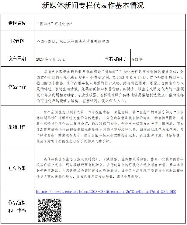 中國青年報社推薦參評第34屆中國新聞獎融合報道、應用創(chuàng)新和新媒體新聞專欄作品專項初評公示