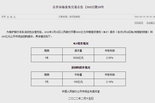 中新財(cái)經(jīng)2月15日電 據(jù)中國人民銀行官網(wǎng)消息,為維護(hù)銀行體系流動(dòng)性合理充裕,2022年2月15日人民銀行開展3000億元中期借貸便利(MLF)操作(含對(duì)2月18日MLF到期的續(xù)做)和100億元公開市場(chǎng)逆回購操作。(完)