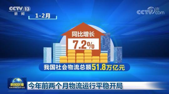央視網(wǎng)消息(新聞聯(lián)播):中國物流與采購聯(lián)合會今天(3月24日)公布的數(shù)據(jù)顯示,今年1—2月,我國物流運行總體平穩(wěn),社會物流總額增長較快。今年1—2月,我國社會物流總額51.8萬億元,同比增長7.2%,物流總額增速延續(xù)回升態(tài)勢,同時明顯高于疫情前2019年水平。從結(jié)構(gòu)看,擴內(nèi)需、促消費政策效應(yīng)持續(xù)顯現(xiàn),工業(yè)、消費物流需求保持較快增長。1—2月,工業(yè)品物流總額同比增長7.5%,較2020—2021年兩年平均增速加快1.4個百分點。消費品制造業(yè)物流需求同比增長9.7%,較2020—2021年兩年平均增速加快5.2個百分點。另外,進口物流需求持續(xù)回落,但降幅在收窄,物流在促進產(chǎn)業(yè)鏈、供應(yīng)鏈穩(wěn)定運行中的作用繼續(xù)凸顯。