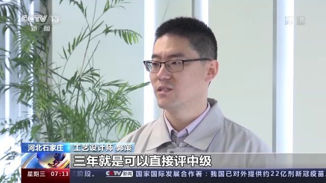 工藝設(shè)計(jì)師 郭策:現(xiàn)在碩士研究生畢業(yè)之后,三年就可以直接評(píng)中級(jí),也就是說(shuō)應(yīng)該是省了兩年時(shí)間。