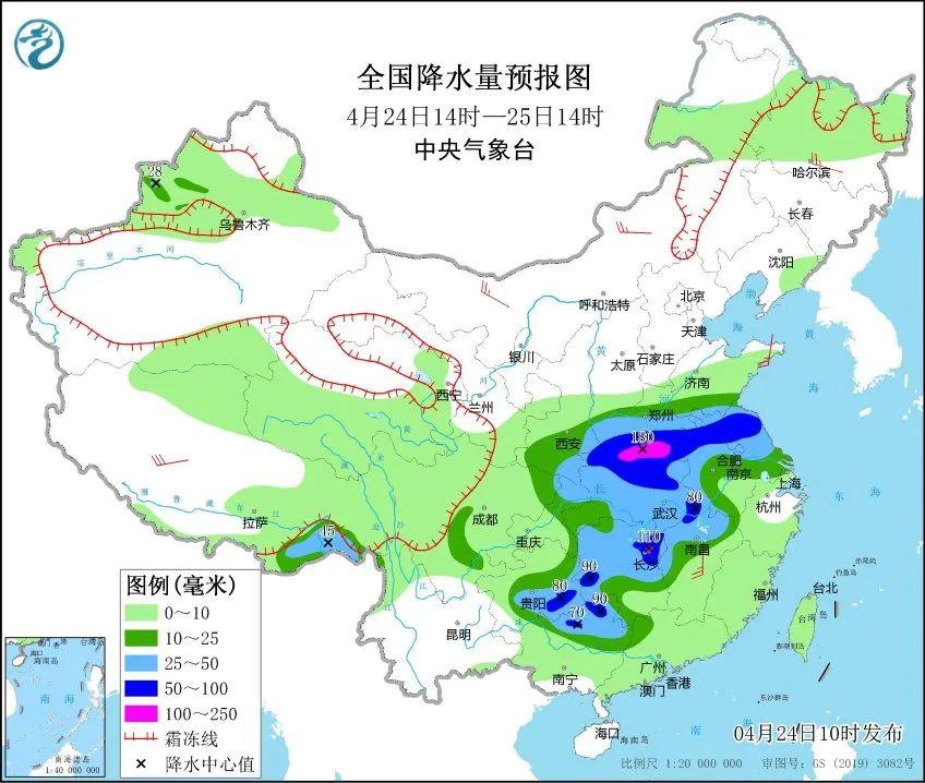 除了強降雨,黃河以南地區(qū)還將遭遇今年來最大范圍的強對流天氣,4月24日傍晚到夜間,河南、湖北、湖南、貴州等地將出現(xiàn)短時強降雨,局地還有8至9級的雷暴大風天氣,貴州還需警惕冰雹;25日強對流影響區(qū)域將東移,主要將集中在湖南、江西、江蘇等地。