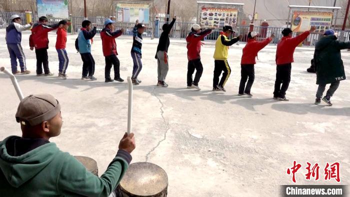 圖為多油完小學(xué)生在課余時間練習(xí)傳統(tǒng)非遺舞蹈“嘎爾”舞?!∝暽@?攝